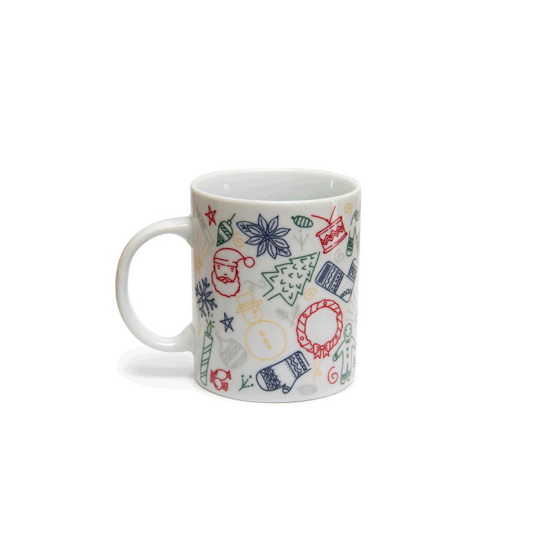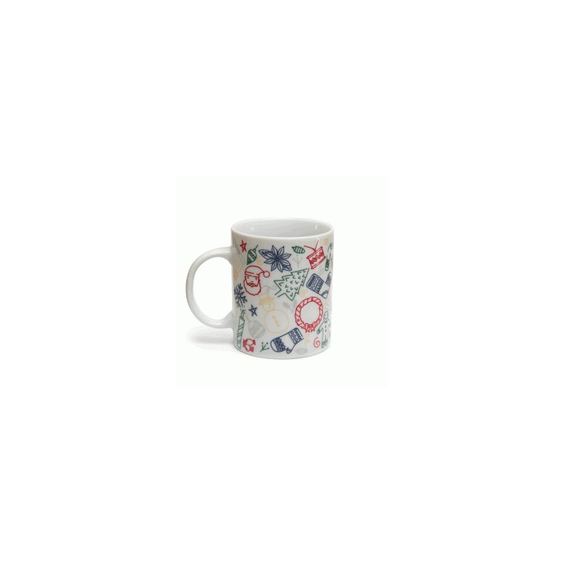 Impresión vitrificable. A diferencia de las tazas sublimadas, esta taza fue impresa con tintas que se funden a la cerámica por ser horneadas a alta temperatura, lo que garantiza la permanencia del decorado y una mayor resistencia a los ciclos de lavado. Apta para microondas.